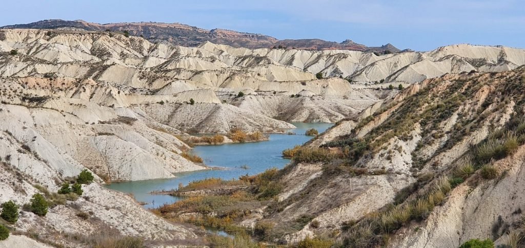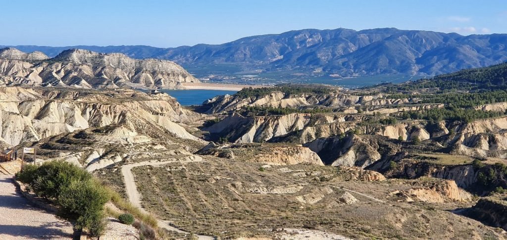 Barranco de Gebas, located in the Region of Murcia, Spain, is a unique and protected natural landscape renowned for its striking "badlands" terrain. This area, covering approximately 2,000 hectares between the municipalities of Alhama de Murcia and Librilla, features a dramatic topography shaped by centuries of erosion. The landscape is characterized by deep gullies, ravines, and canyons, creating a moonscape-like appearance