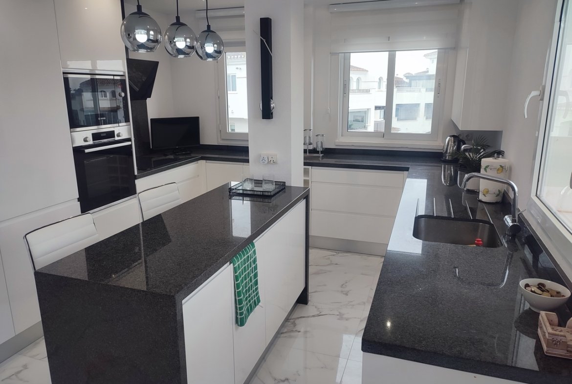 Stunning renovated open plan penthouse with south facing views over the golfcourse, lakes and swimming pool. A private underground parking space is also included in the sale.The apartment is being sold furnished minus personal possessions. It would make an excellent holiday home or suitable for permanent living.The first thing that impresses you about Hacienda Riquelme Golf Resort is the wide-open spaces, the extensive gardens and the low-density construction, which create a relaxing environment to enjoy a very safe and peaceful life or holiday. The apartments are set out spaciously around the magnificent and challenging 18 hole golf course part of the Jack Nicklaus Golf Trail. In the heart of the resort you will find the beautiful renovated Hacienda where you will find a supermarket, clubhouse, restaurant and bar. The inner court yard becomes the hive of entertainment in the Summer, whilst the large terrace set in the stunning gardens is open all year for “al fesco” dining and drinking.Facilities:Gated Community.24 hour security."El Cason" Bar, Restaurant, Clubhouse. "Sips" Coffee ShopSupermarket.Summer Entertainment.19 large community swimming pools.Communal gardens.Trees, 5 lakes.Wild flowers & local wildlife.Driving range & Golf ShopTennis courts.Paddle tennis courts.Football / Basketball court.Outside gym area.Children's play areas.Hacienda Riquelme is very well connected by the main motorways. Murcia Airport (20 mins)Mar Menor beaches (15 mins)Mediterranean beaches (20 mins)For those who like historical buildings, architecture or a desire to shop, the lovely cities of Murcia and Cartagena provide plenty of entertainment. Murcia (30 mins)Cartagena (45 mins) Murcia Airport (20 mins)Near to the bustling popular village of Sucina with shops, restaurants, bars, chemist, supermarket and lots more (5 minutes)For more information on the apartments available please contact us.