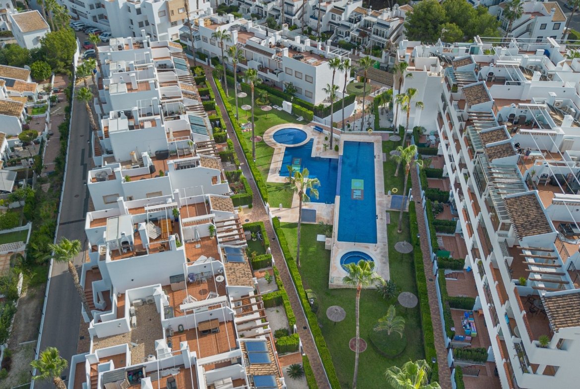 Penthouse for sale in Orihuela Costa, located in the prestigious area of Villamartín, in the heart of the Costa Blanca South. Set within a private residential complex with communal swimming pool and landscaped gardens, this property offers a peaceful and well-maintained environment, perfect for enjoying the Mediterranean lifestyle.The apartment features 2 bedrooms and 2 bathrooms, a bright living room with direct access to a 15 m² balcony, and a spectacular private solarium of 50 m². From the rooftop terrace you can enjoy open views over the communal pool, the Villamartín golf course and a slight glimpse of the sea on the horizon.Its location is especially attractive: only 5 minutes from Villamartín Golf, around 8 minutes from the beaches of Orihuela Costa such as La Zenia, Playa Flamenca and Cabo Roig, and less than 3 minutes by car from supermarkets, restaurants, pharmacies and all essential services.La Zenia Boulevard shopping centre is just 10 minutes away, Alicante airport approximately 45 minutes, and Murcia-Corvera airport about 40 minutes. A strategic area both for permanent living, a holiday home or a rental investment.This penthouse in Villamartín combines elegance, generous outdoor spaces and a prime location, in one of the most sought-after areas of Orihuela Costa and the entire Costa Blanca.