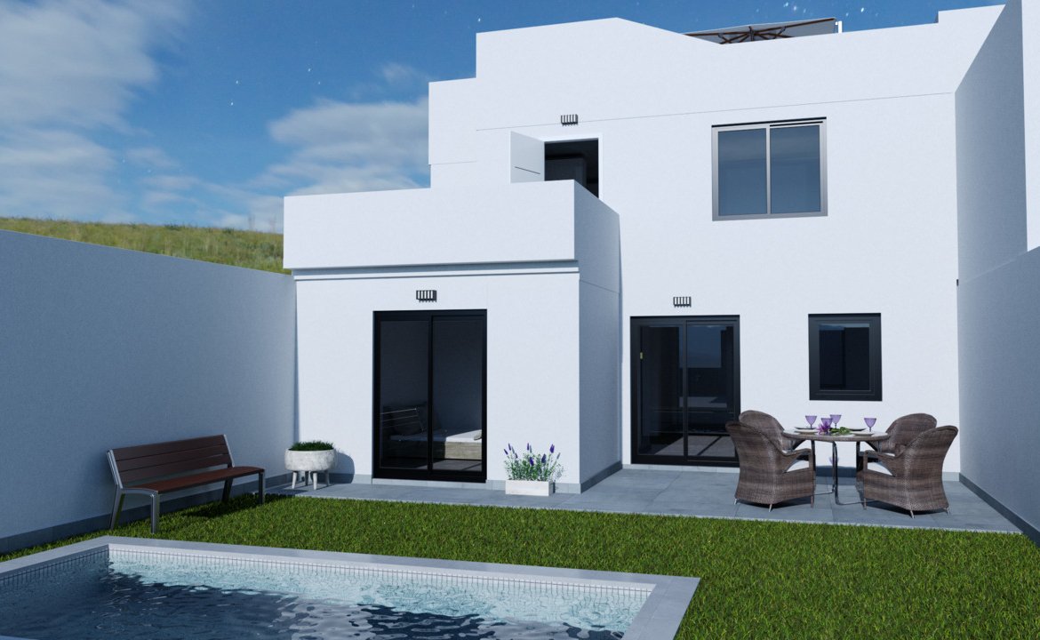 These newly constructed duplex residences each feature three bedrooms and three bathrooms across two floors. The properties include a private pool, terrace, secure garage, and a spacious rooftop solarium equipped with an outdoor kitchen. The build area is approximately 119 m², situated on plots exceeding 180 m². The ground floor offers an open-plan living and dining area with a modern fitted kitchen, alongside a double bedroom with fitted wardrobes and a family bathroom. Upstairs, there are two additional bedrooms and two bathrooms, including one en-suite. The first-floor hallway provides access to a large terrace and stairs leading to the rooftop solarium. Additional features include ducted air-conditioning, a furniture package as a special offer, and completion is scheduled for February 2026.Los Belones, a small village situated 5 km south of the famous Mar Menor in Spain’s Murcia region.Despite its size, Los Belones is a busy and modern village that boasts a wide selection of shops, bars and outdoor fun such as golf courses and beaches.Los Belones is only 20 minutes to the historical Cartagena City and just 15 minutes from the beaches.