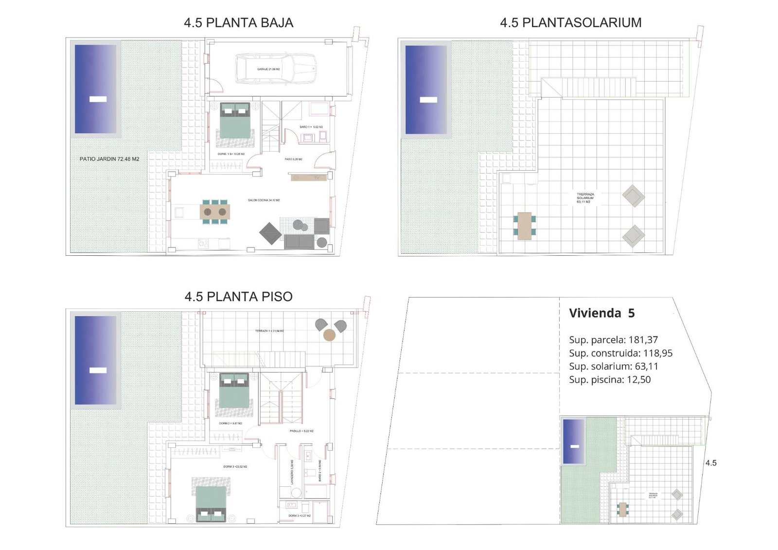 New Build luxurious complex of 5 properties (3 townhouses and 2 villas) with private swimming pool, gated garage, interior patio, solarium with Summer kitchen and pre-installation for electric vehicle charging.
